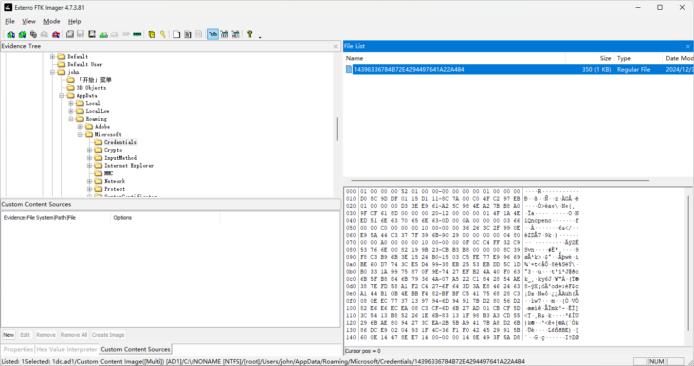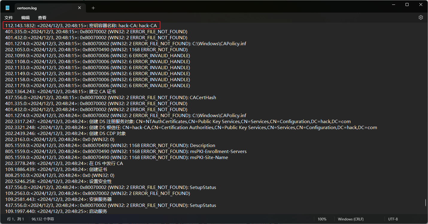 使用FTK Imager挂载AD1检材文件,定位到C:\Windows\certocm.log中,可以查看到注册CA的名称: