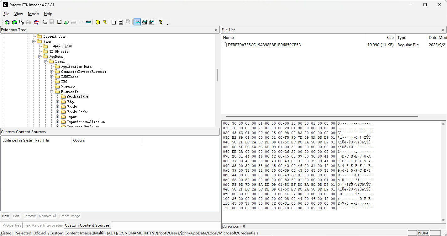 这里定位到两个文件:C:\Users\john\AppData\Roaming\Microsoft\Credentials\14396336784B72E4294497641A22A484