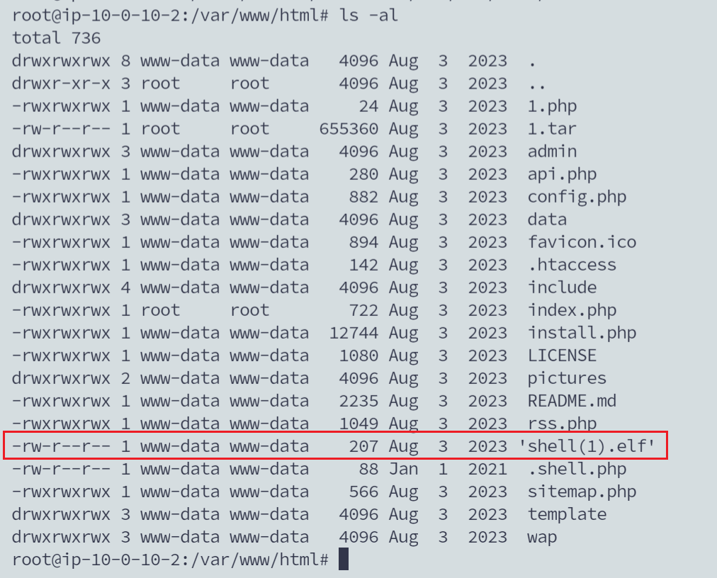 - 可以看到html目录下面有一个shell.elf