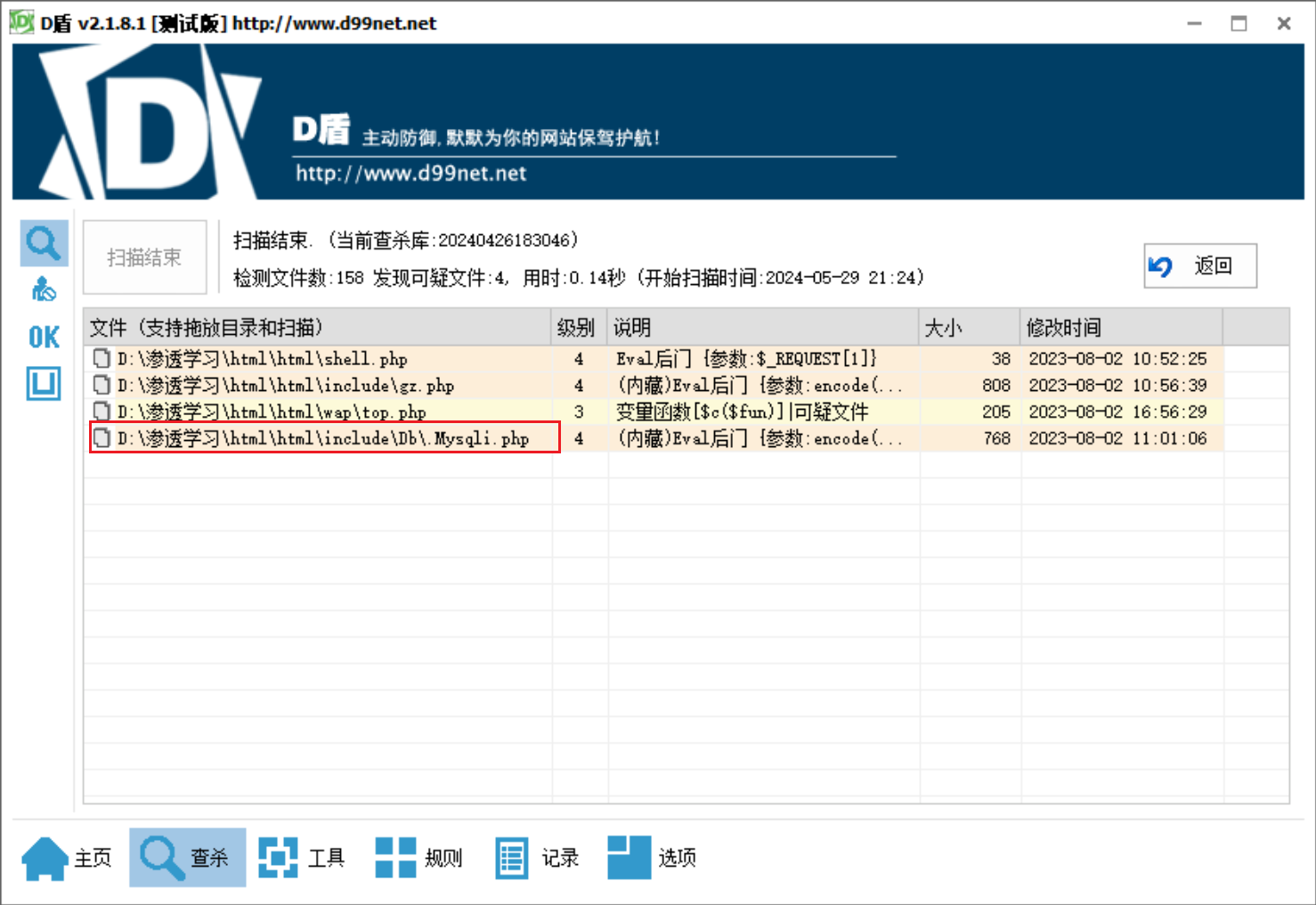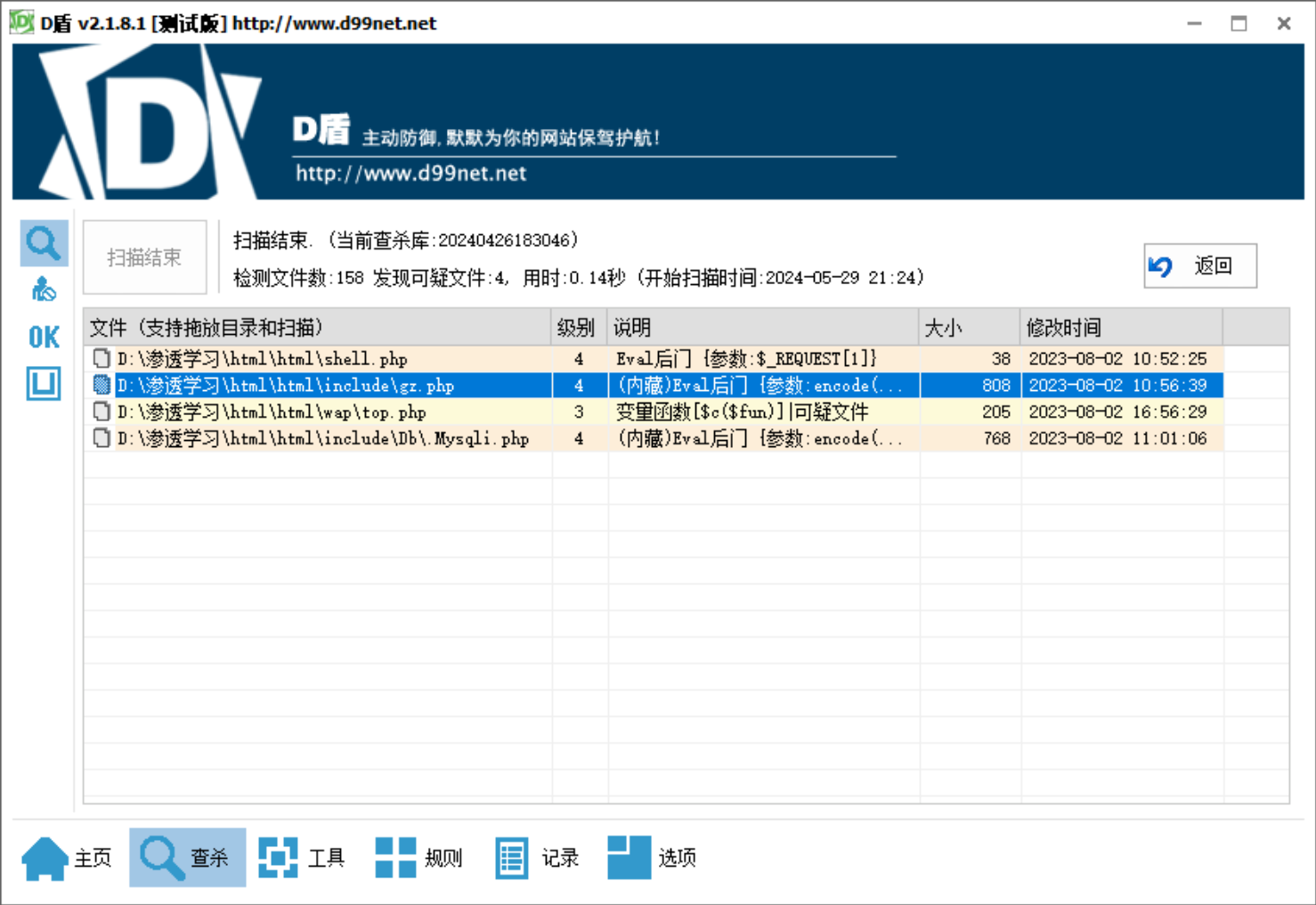 用D盾直接开扫,扫到几个后门(实际环境不能把人家公司的网站扒下来,人家会以为你是间谍…)