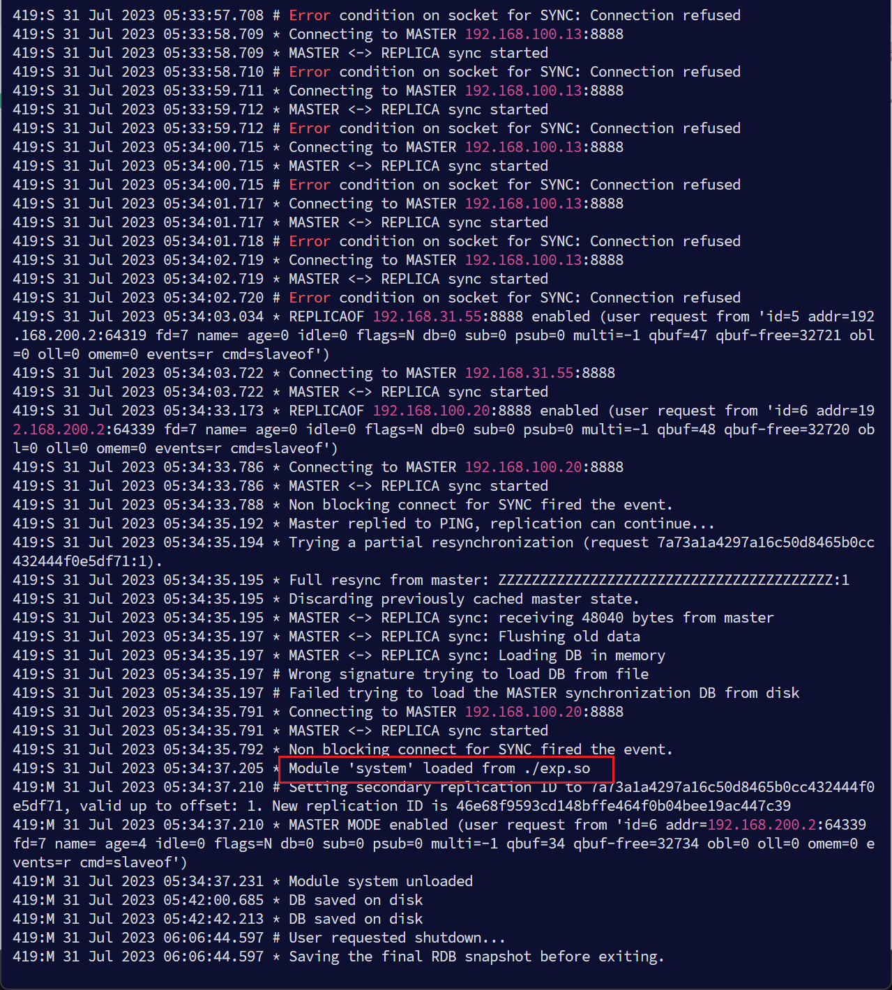 这里查redis的log,可以直接发现黑客IP