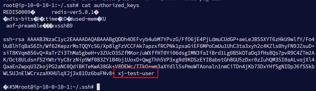 在root下有公钥,可以看到有一个用户名,并且可以看到这个公钥是由Redis写的