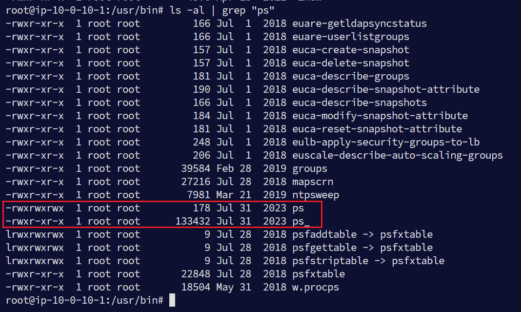 发现ps被篡改,前往/usr/bin查看ps文件