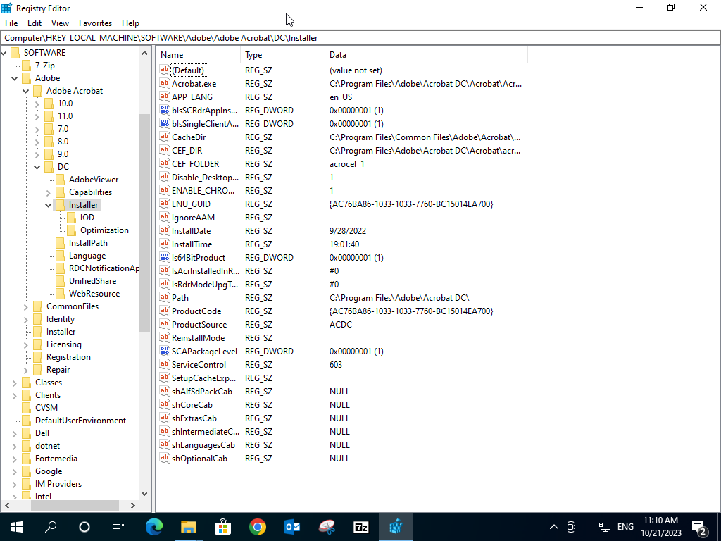 查注册表就可以看到了,地址:HKEY_LOCAL_MACHINE\SOFTWARE\Adobe\AdobeAcrobat\DC\Install