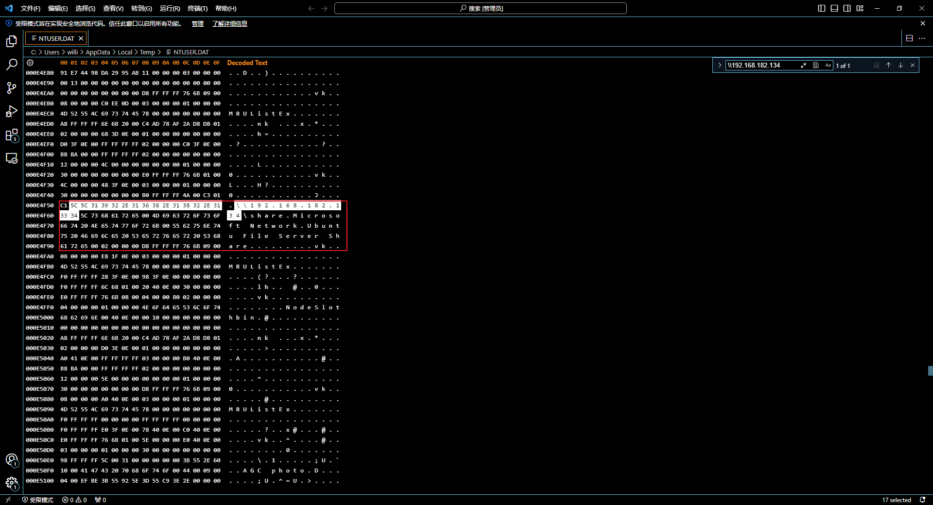 想着一个一个去看的..结果发现看到第一个用户dat的时候就找到了..
