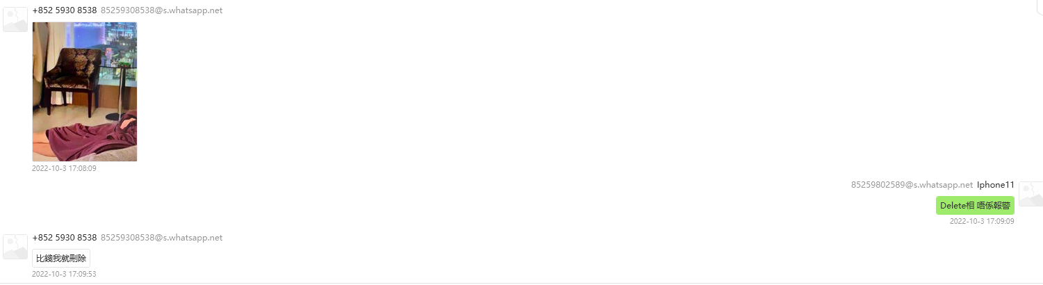 D:查看林浚熙和王晓琳的WhatsApp聊天记录,可以知道林浚熙偷拍了王晓琳的私密照,并勒索金钱以删除图片