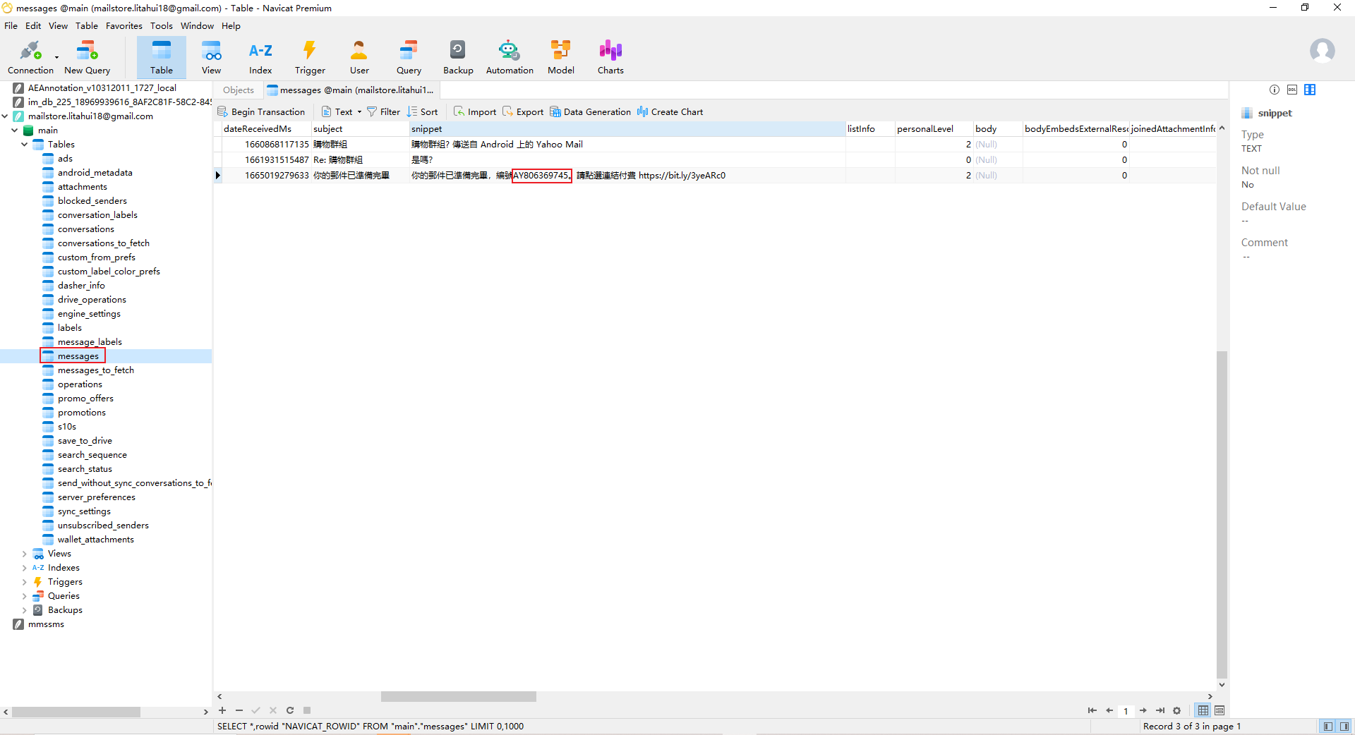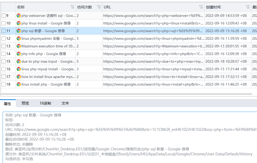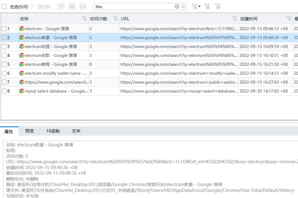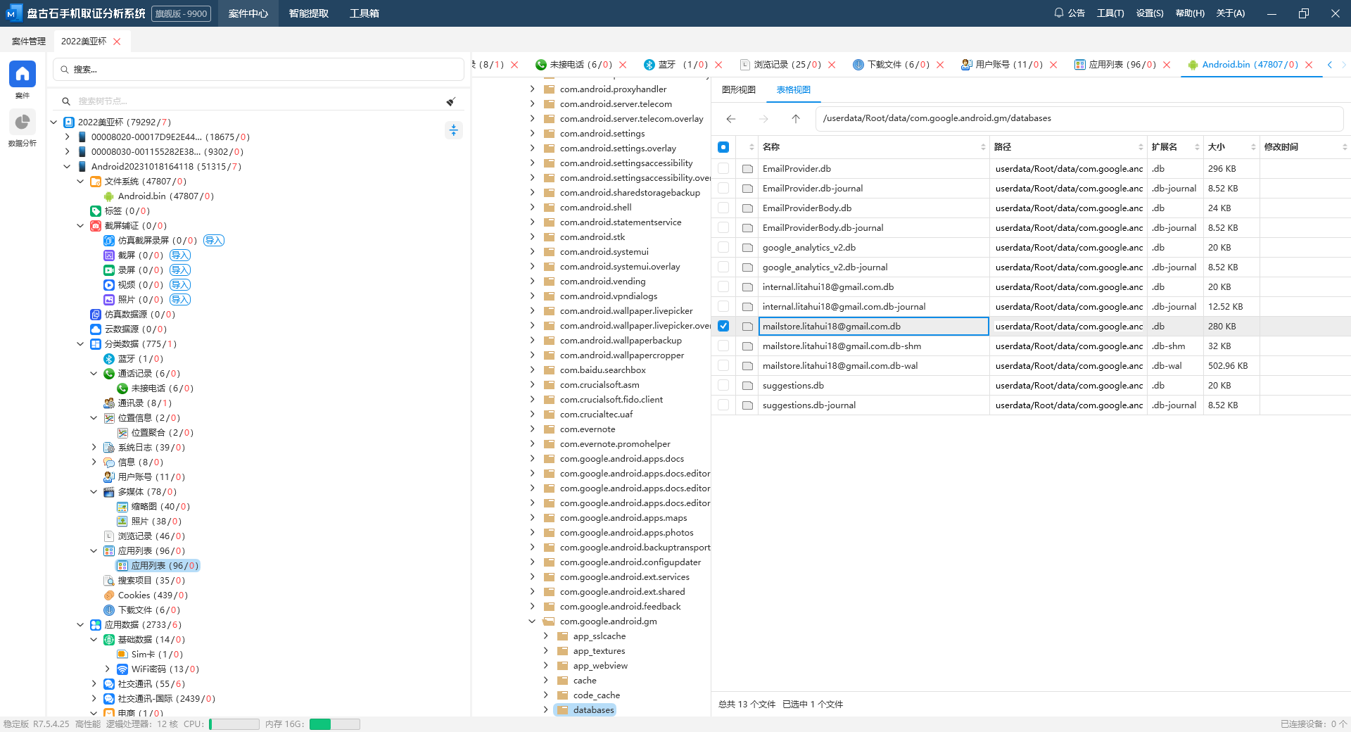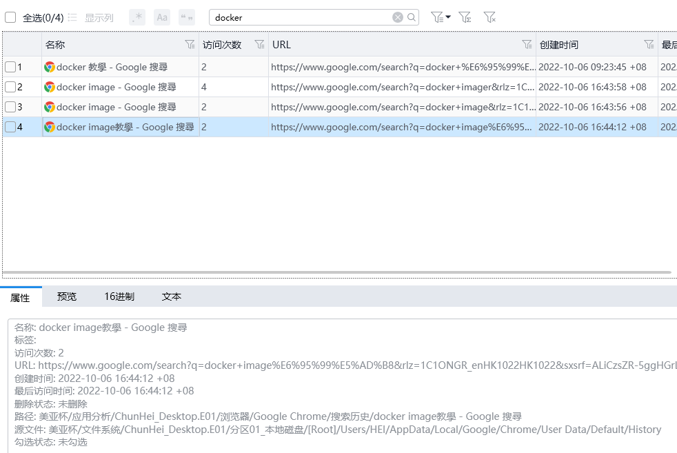 结合之前对李大辉手机的分析,可以知道他的邮箱地址为litahui18@gmail.com,利用Email字段进行搜索即可