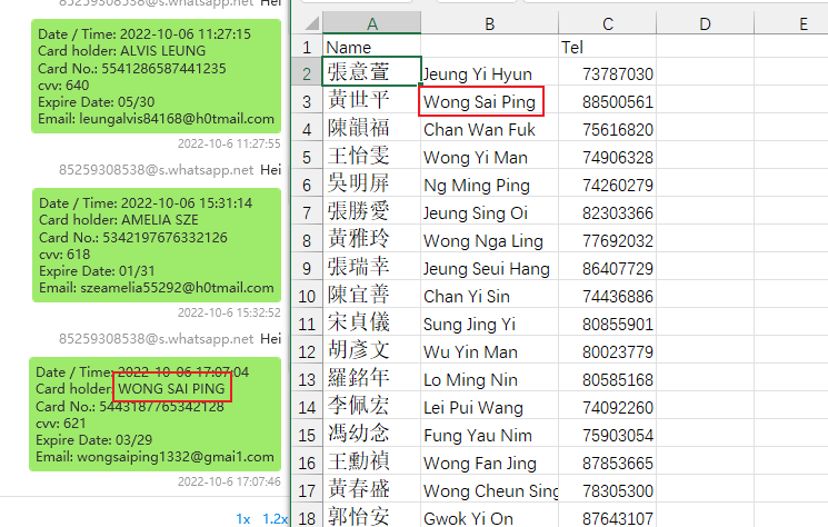 B. 信用卡号码