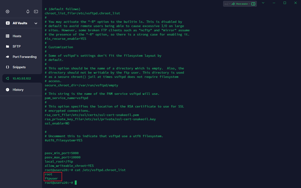 仿真后打开仿真机内的vm,查询etc下的vsftpd.conf,发现存在一个存放用户的列表