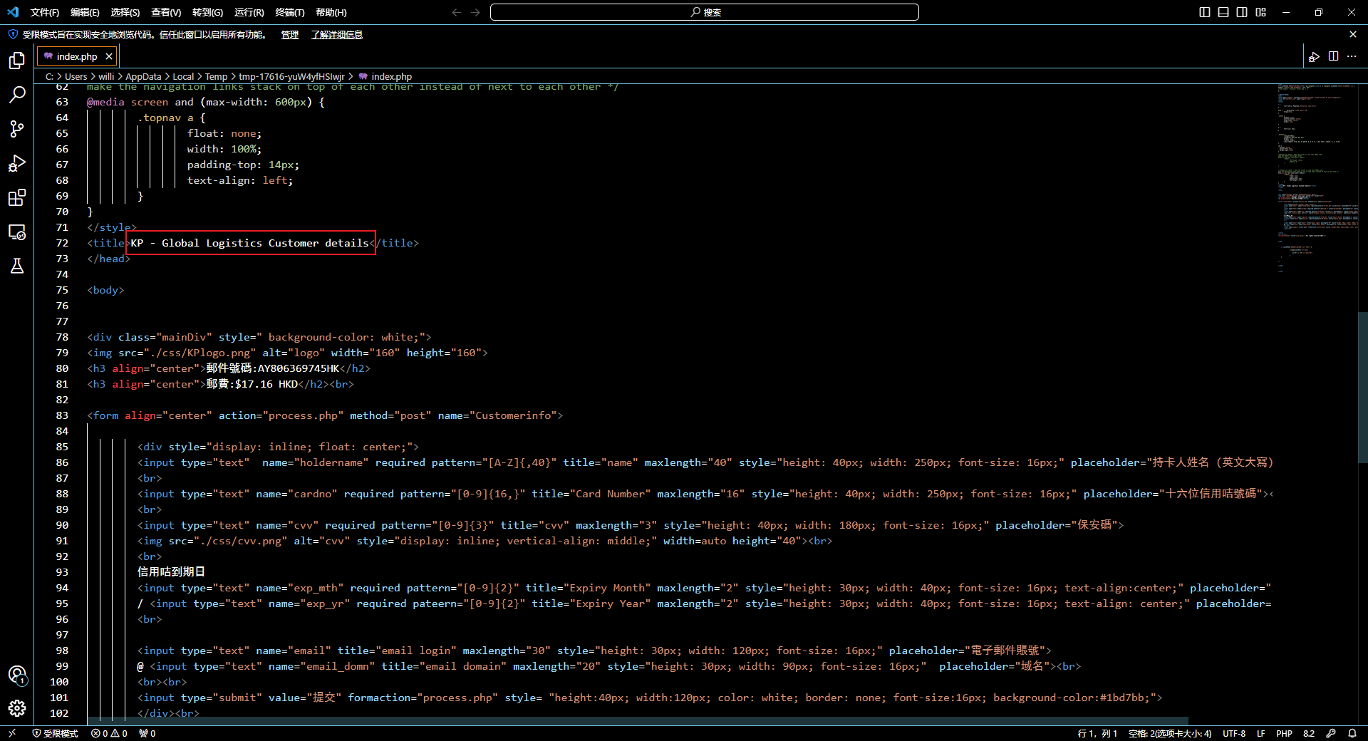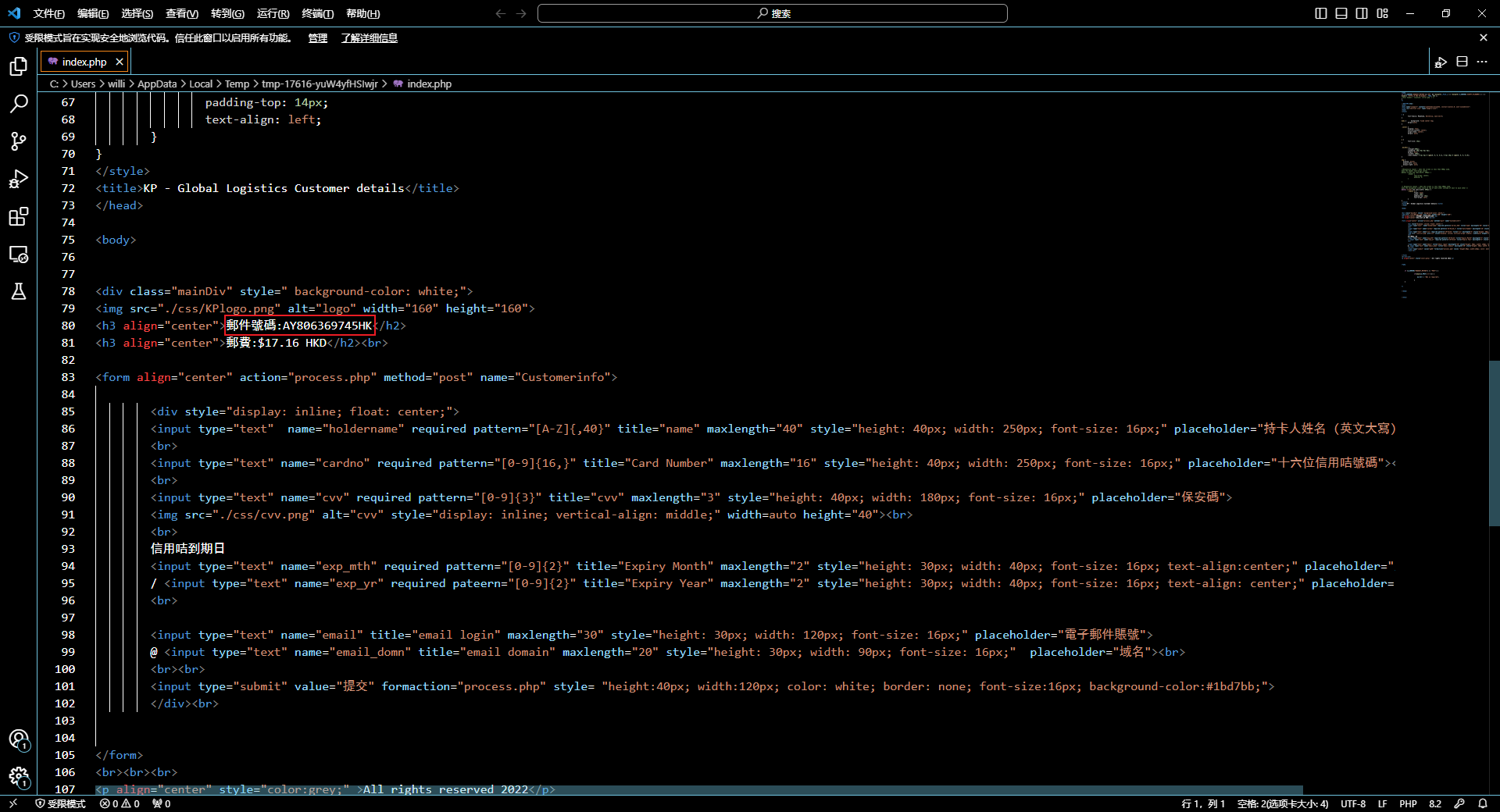 根据上题找到index.php,发现标题存在类似公司名称