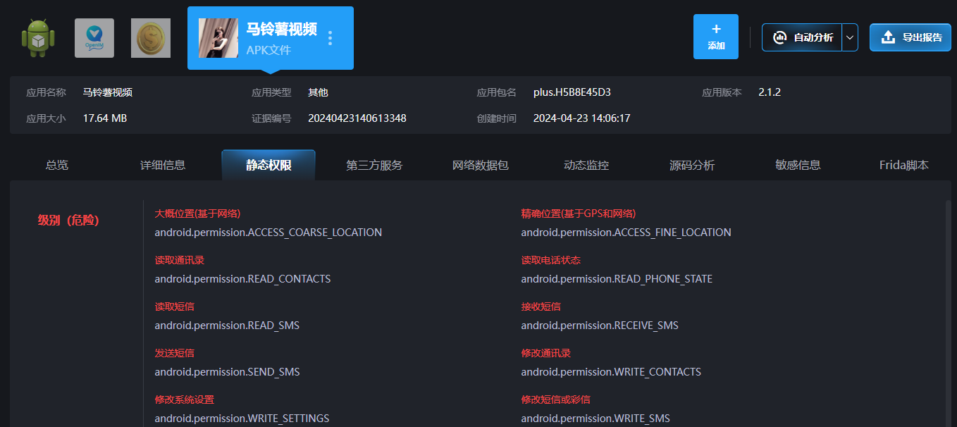 4 “该APK具备下列哪些危险权限(多选题):