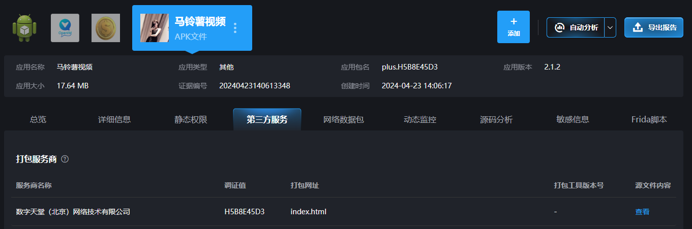 3 该APK程序在封装服务商的应用唯一标识(APPID)为