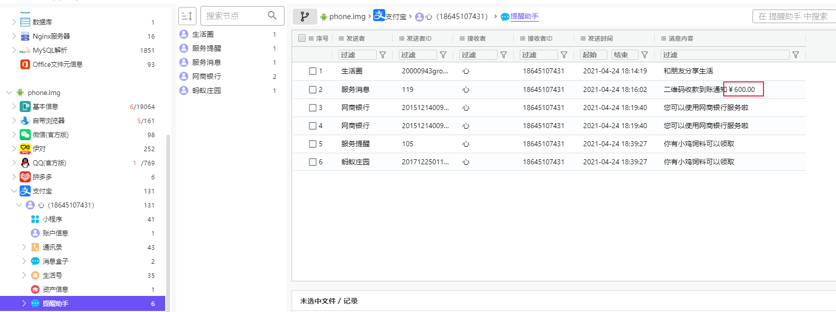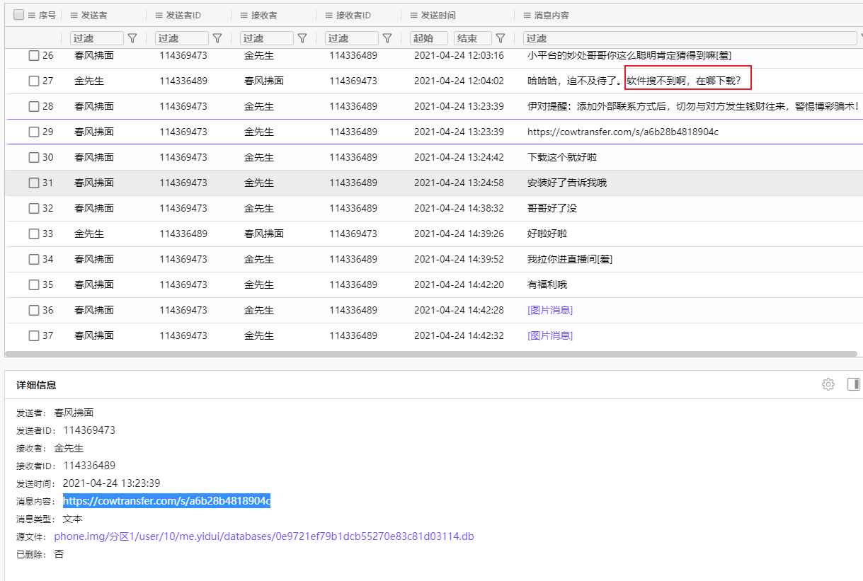 由上图可知,受害者在2021/04/24-14:39左右安装的软件,所以可以定位到设备和手机号