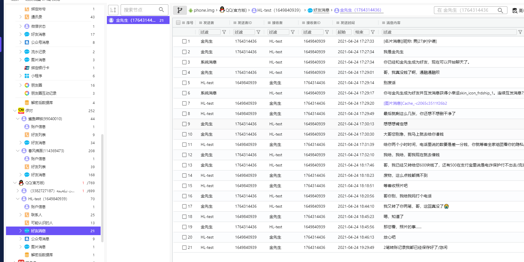 受害者微信名为金先生