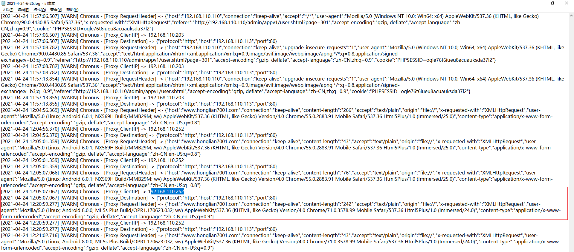 只有这个IP的UA头是手机的