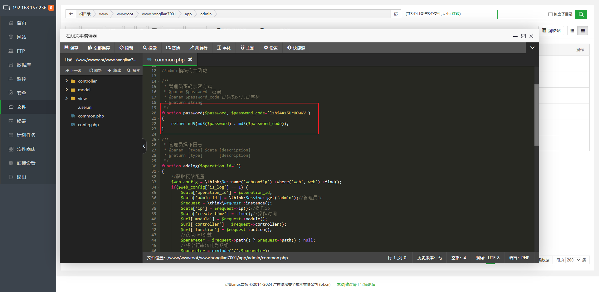 27 请分析宝塔面板对于其默认用户的密码一共执行了几次上题中的哈希算法