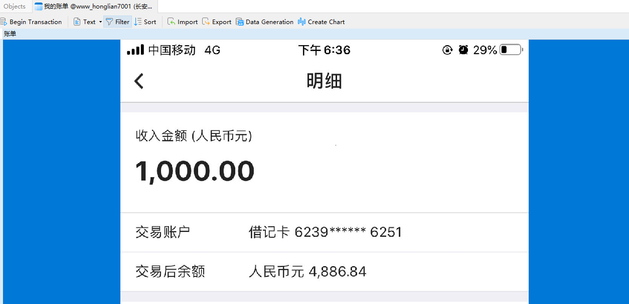 还有一个是在检材5里面,有一个我的账单表,里面有blob