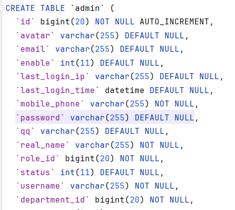 考虑到用户表的密码可以从修改密码找到加密方式,所以可以分析前端