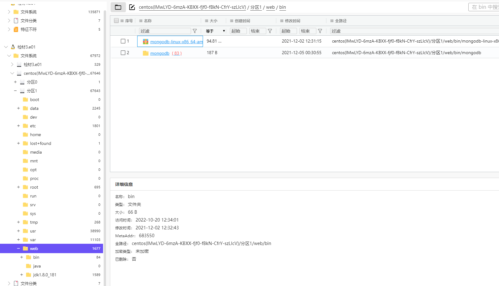结合检材1里面的后端jar包,也是MongoDB