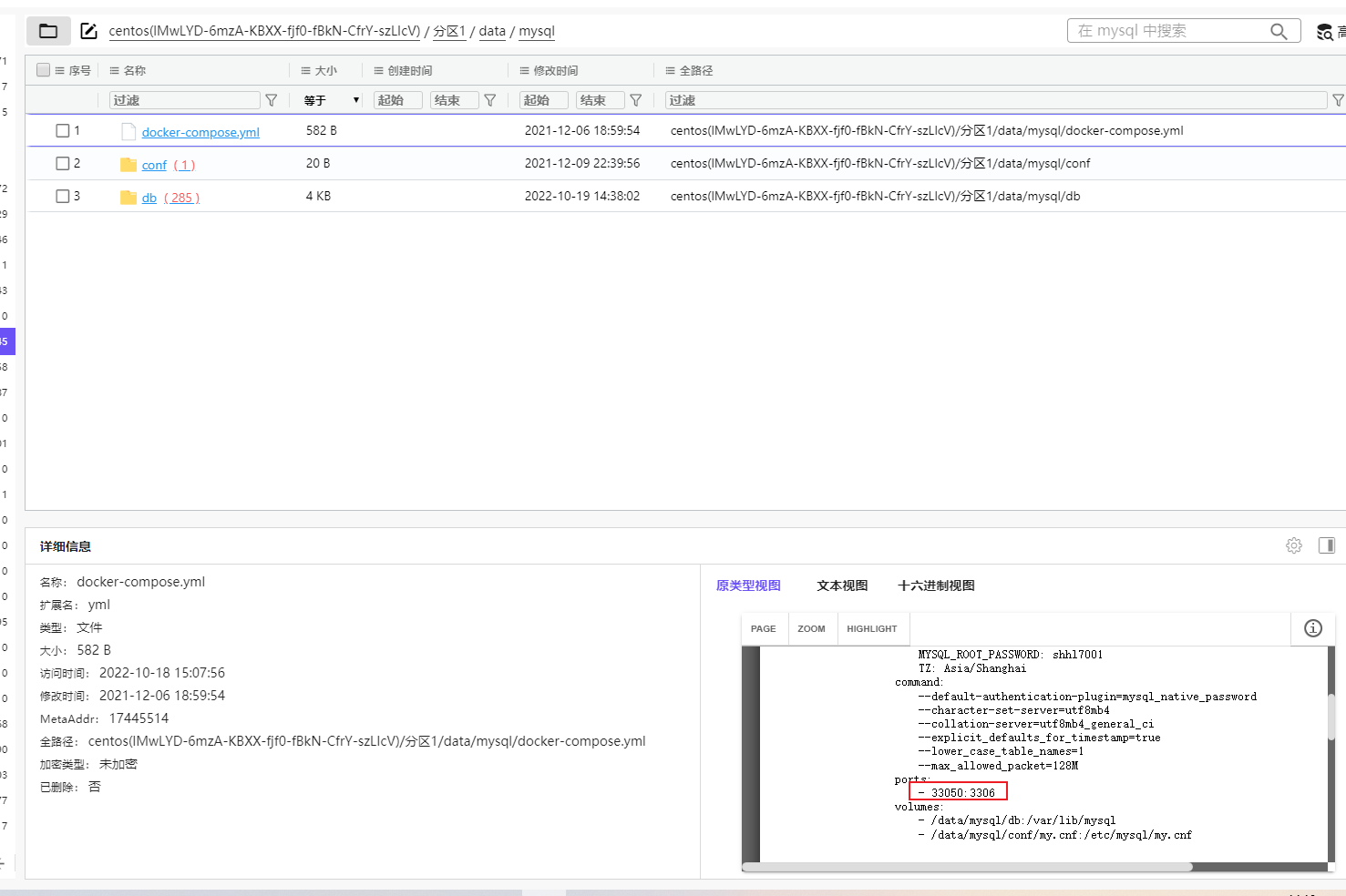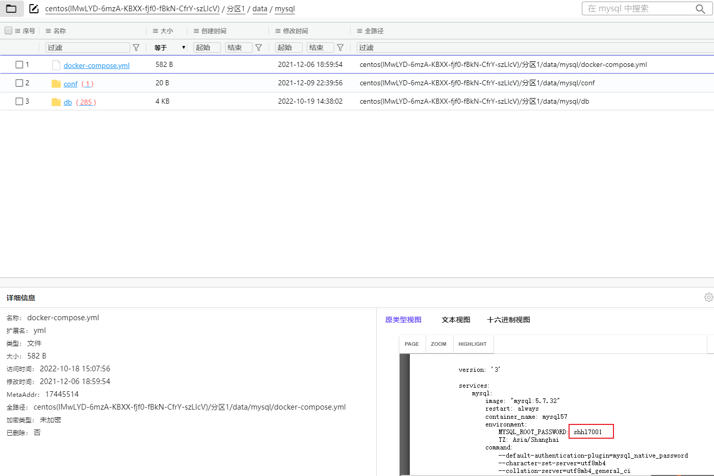 检材3中,MySQL数据库在容器内部的数据目录为