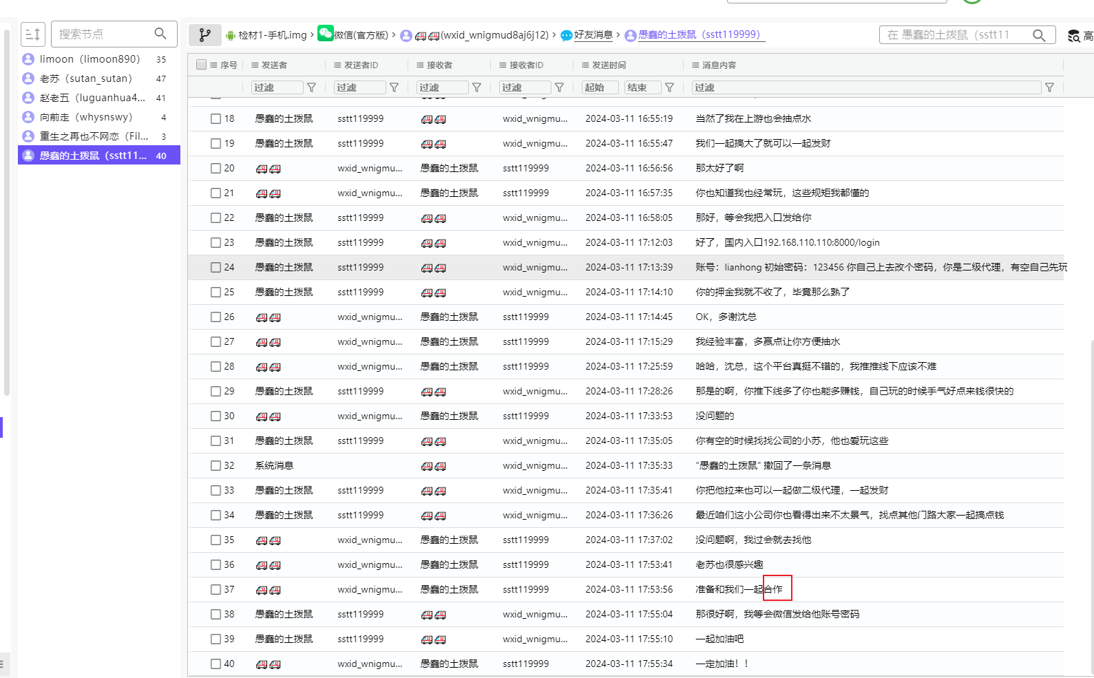 发现聊天记录里面包含合作的就是愚蠢的土拨鼠