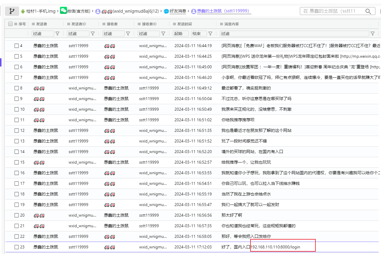 - 请分析嫌疑人手机,嫌疑人老板组织人员参与赌博活动,所使用的国内访问入口地址为?【答题格式:192.168.1.1:1000/abc】