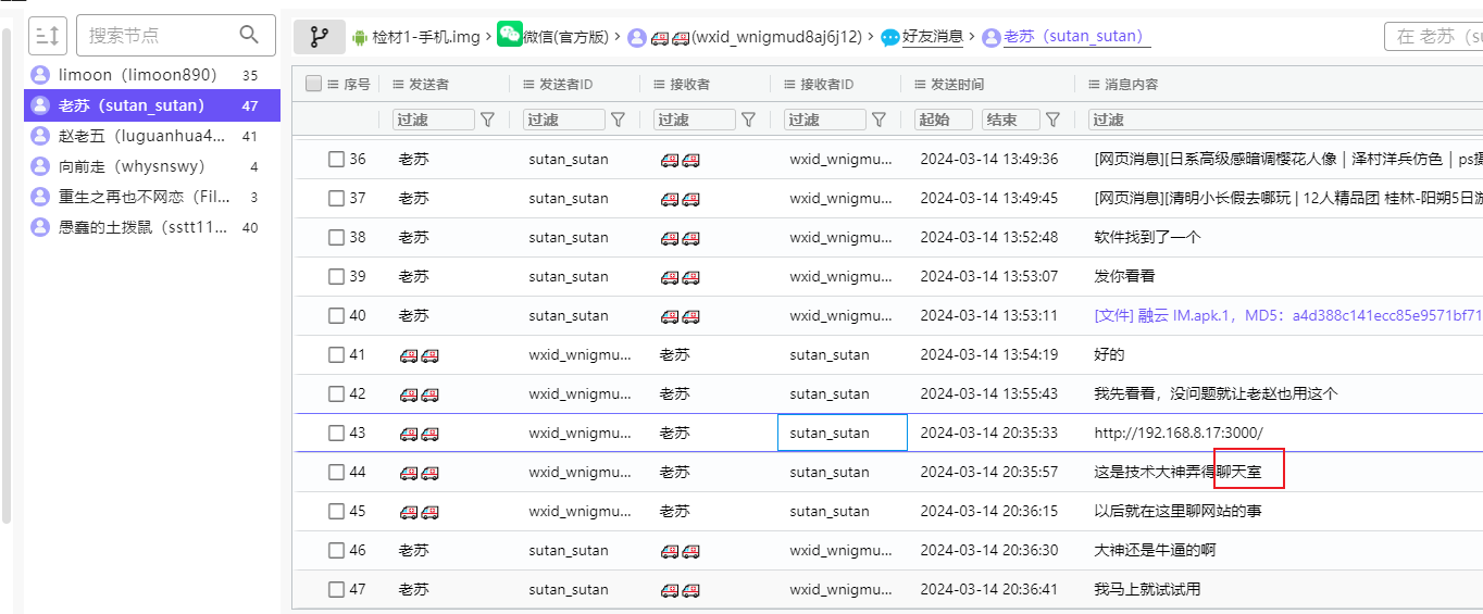 在手机聊天记录里面找到了聊天室IP