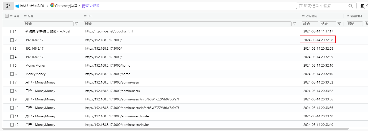 - 分析技术员赵某的windows镜像,据赵某交代,其在窝点中直接操作服务器进行部署,环境搭建好了之后,使用个人计算机登录聊天室进行沟通,请分析赵某第一次访问聊天室的时间为?