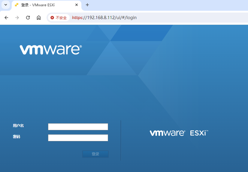 这里需要进入ESXI的后台,位置是在https://192.168.8.112/ui/#