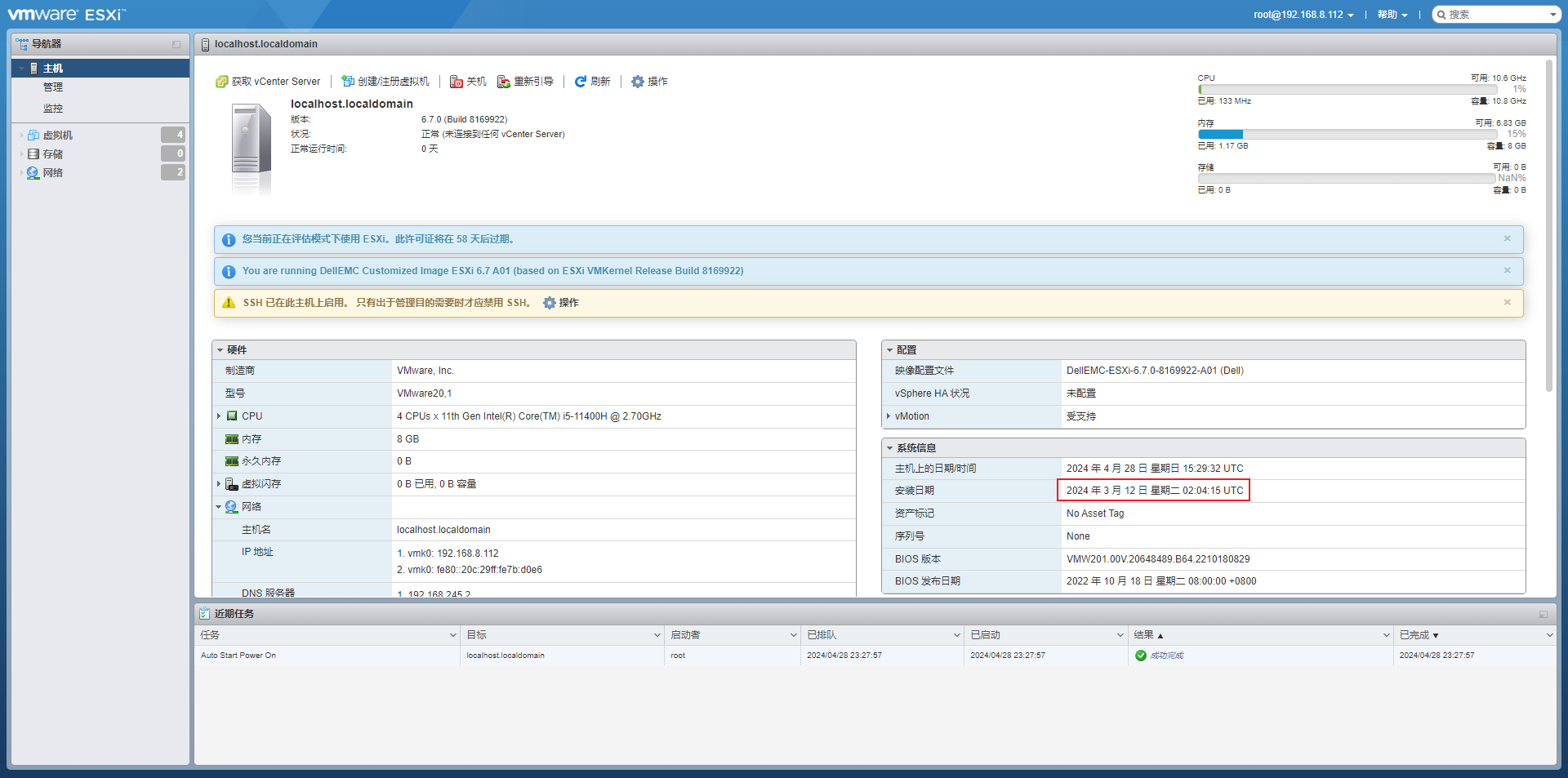 - 请分析ESXi服务器,该系统的安装日期为: