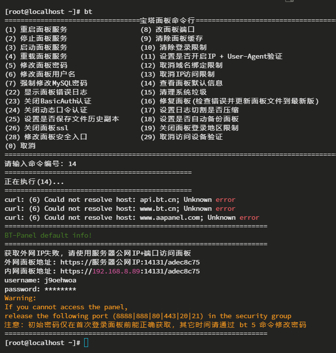 使用宝塔命令查看