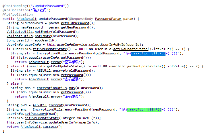 定位到jar包的com.ruoyi.web.controller.app.UserController内的updatePassword方法