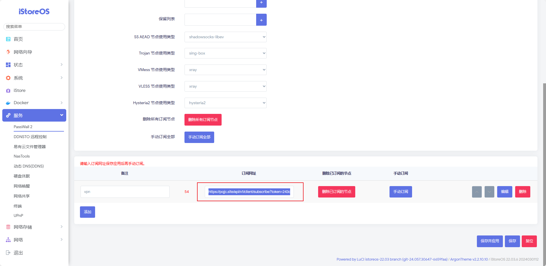 翻找发现只有PassWall 2有订阅信息